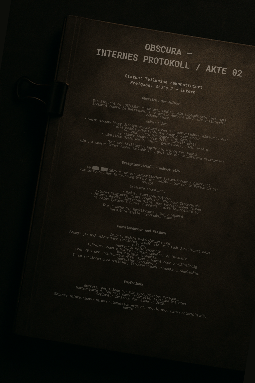 Die ehemalige Versuchsanlage OBSCURA wurde überraschend wieder aktiviert. Reboot läuft. Phase 1 startet 2026.